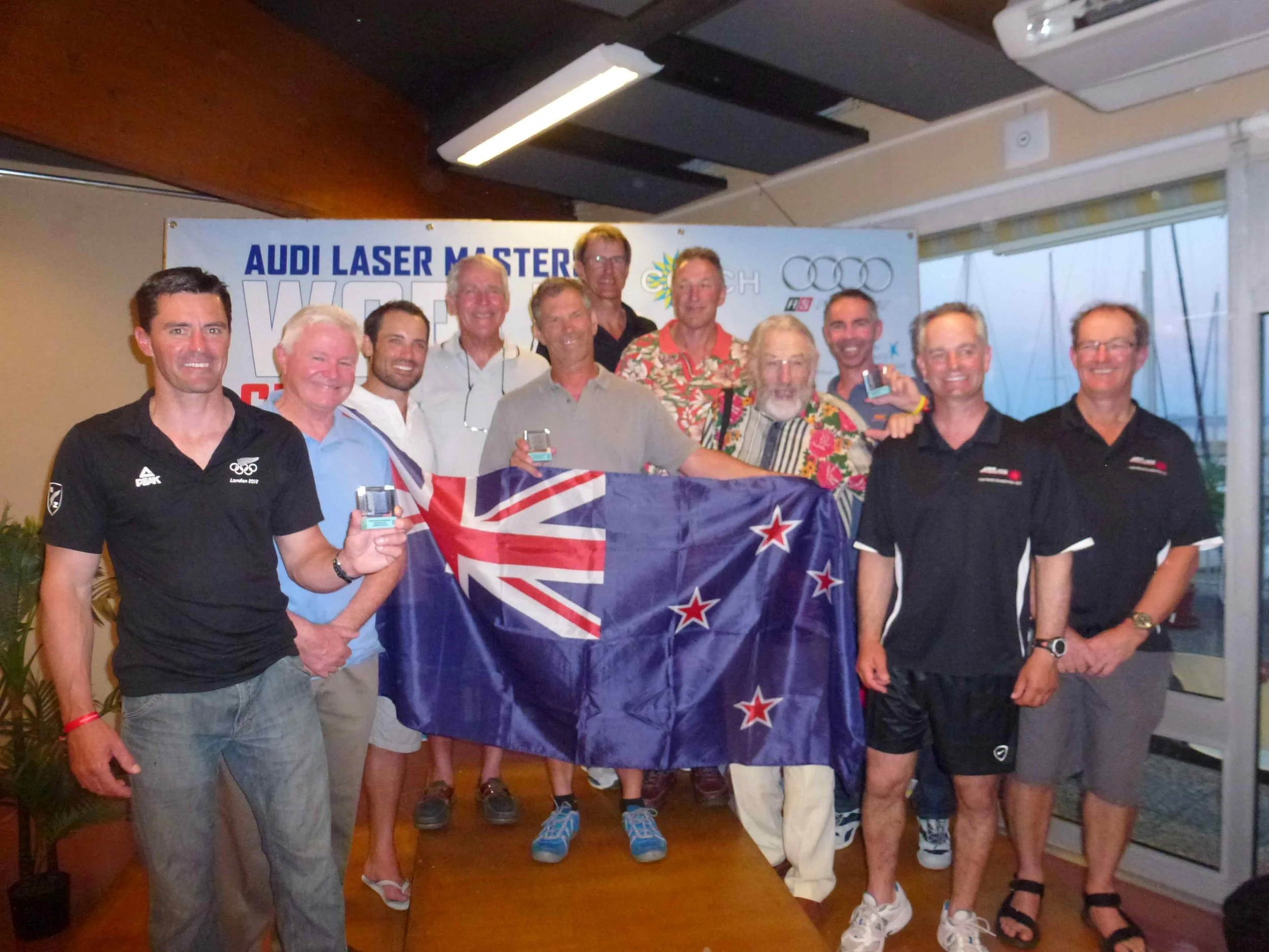 One of the benefits of sailing at the Masters Worlds is the variety of sailors and personalities you meet. I think its worth noting that while the racing has been incredibly close much of the time the quality and spirit of the racing here, the rule compliance etc has been excellent and it has been an absolute pleasure to compete. There have been many instances of multiple boats rounding marks or finishing within inches of each other on opposite tacks yet sailors with no language in common have managed to negotiate all the situations with very few disputes.
