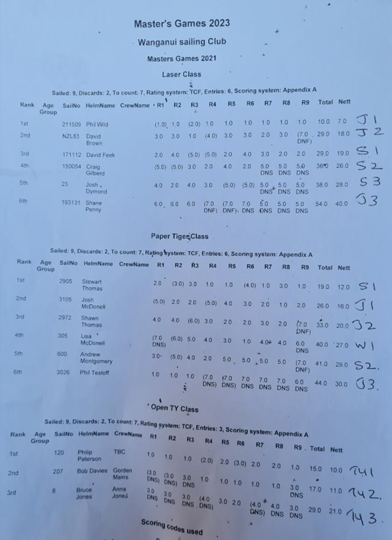 The New Zealand Masters Games were held in Whanganui in early February where circa 5000 aging weekend warriors descended on the otherwise out of the way city in the Manawatu. The event location alternates each year between Dunedin and Whanganui. The sailing discipline was a nine-race series over three days held downstream in the river out of the well-resourced Whanganui Sailing Club. Long time organiser, Lindsay Stevenson, along with his team, did a fantastic job in making the most of what they had to work with as the river was in flood with all sorts of things careering down the heavily silt laden water way. The Race committee also had the added constraint of having to get races away within a tight window before they ran out of water.