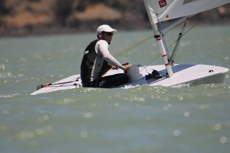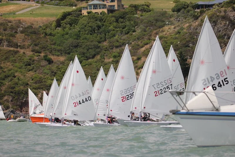 A fantastic first day for the Laser Nationals with clear skies, 30-degree temperatures and a lovely 10-knot breeze. Every wind forecast site anyone could find agreed, 10 -15 knot NE sea breezes would be it for the day. The only dissenter was the wind itself which decided to come in from the South so with trepidation the race committee set a course up into Charteris Bay and sure enough the southerly settled in for the afternoon and gave us two interesting races. Pressure variations, tide, a shifty breeze and a small slop provided challenging conditions for all with a few tide-induced early starters and a few swimmers proving that the challenges of the day were real, even if the water felt like we were sailing off a tropical island.